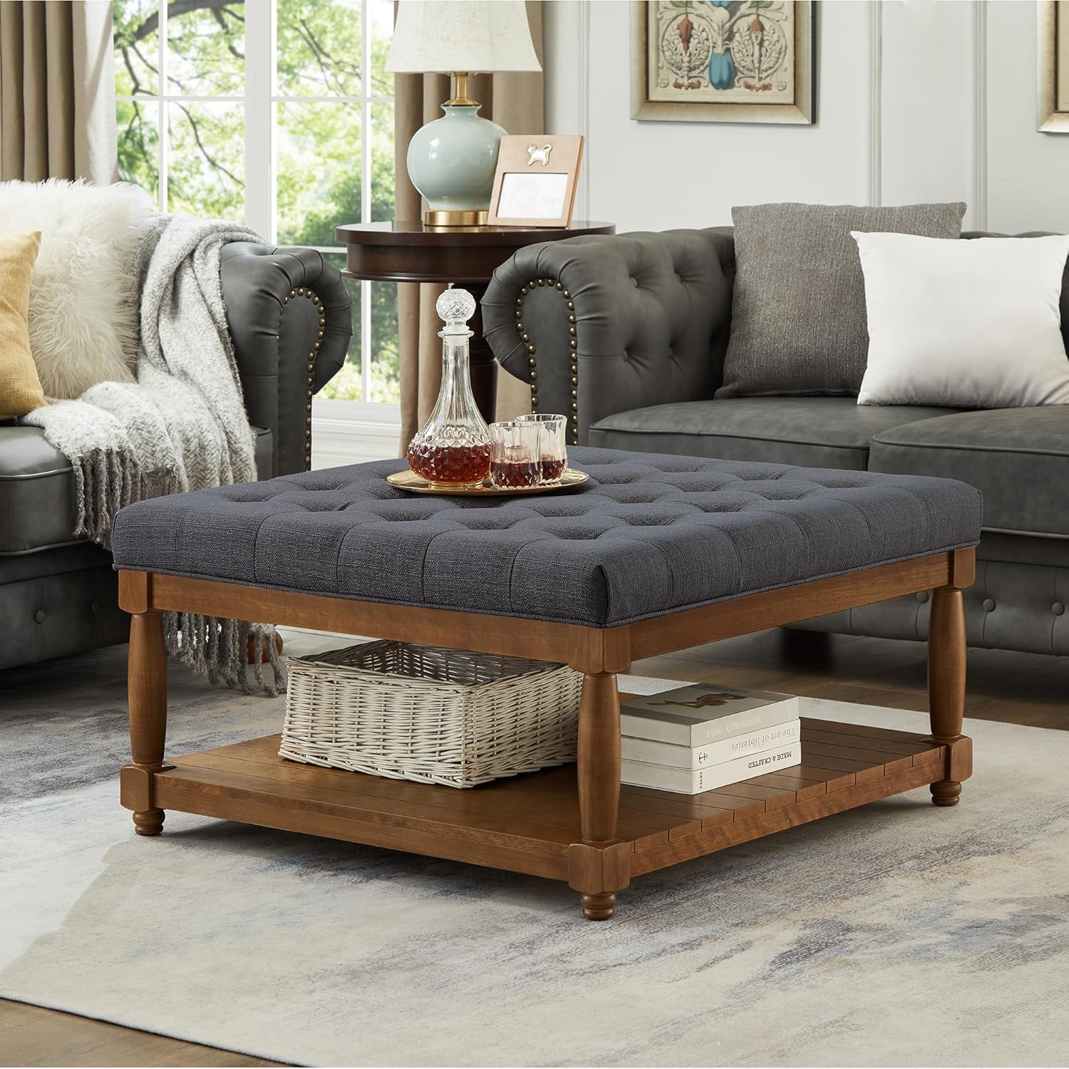 • Quality Craftsmanship: Constructed from premium solid wood and featuring a plush tufted button cushion top, this upholstered coffee table provides both durability and comfort. The organic grain patterns enhance its visual charm, while the robust build guarantees lasting performance, even with everyday use.