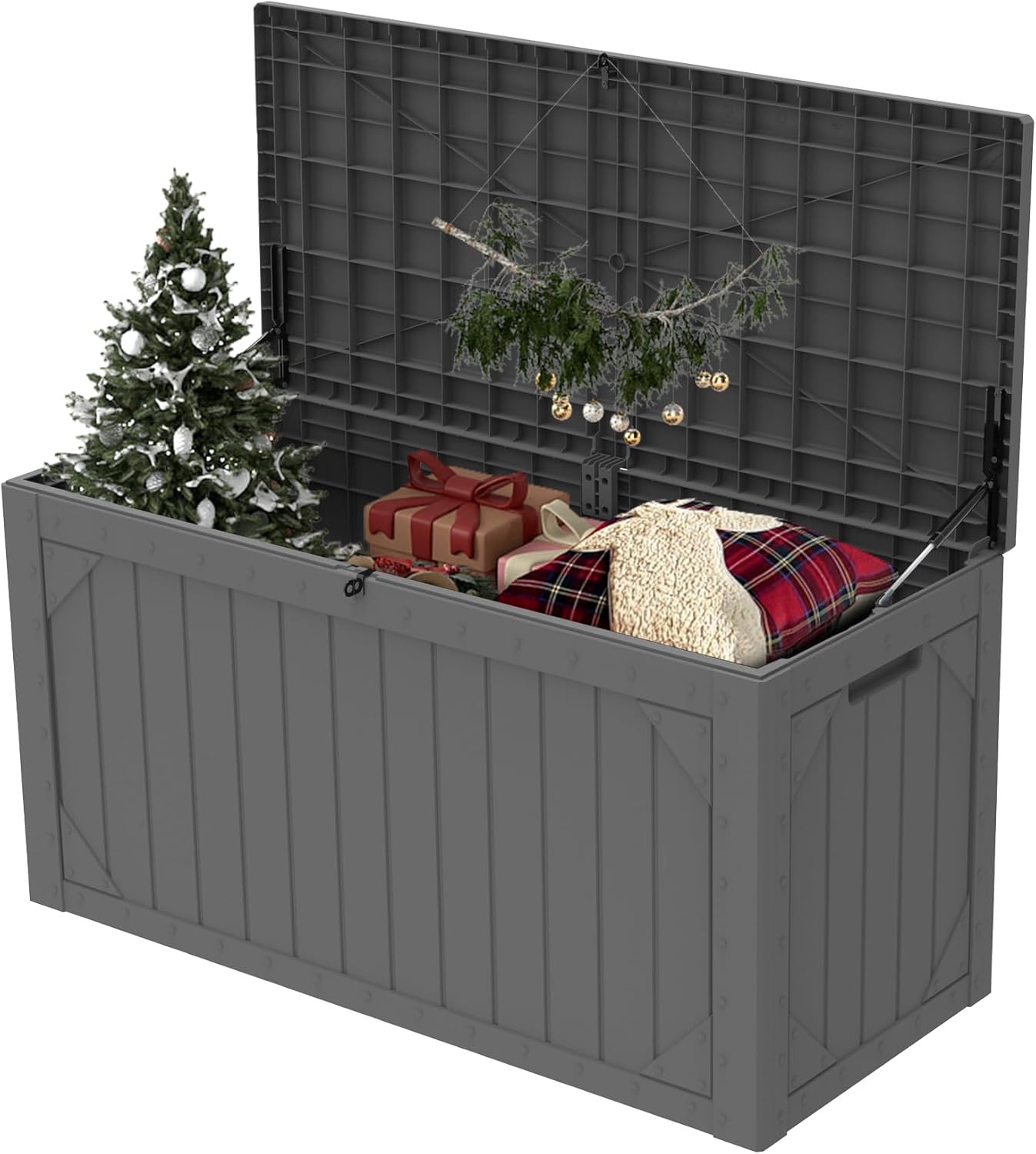 Deck Boxes Outdoor Waterproof: Designed as a waterproof storage solution, this deck box protects your belongings from moisture and ensures they stay dry even during heavy rain. The lockable lid adds an extra layer of security, keeping your valuables safe from theft or damage.
