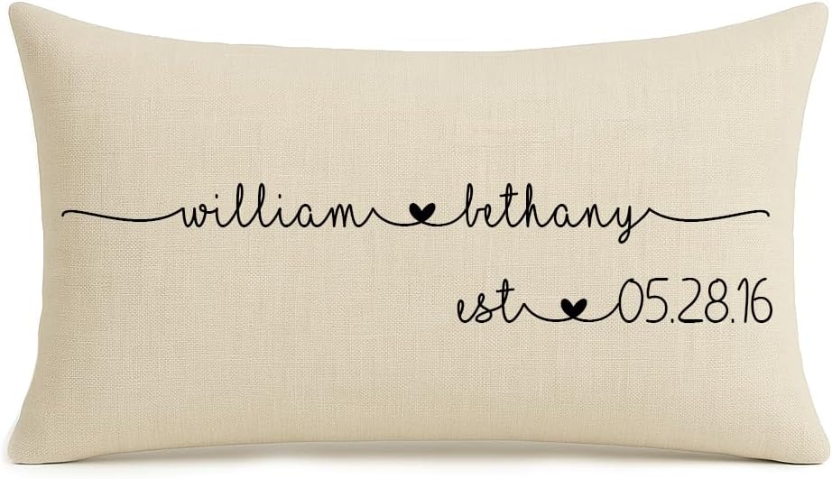 Celebrate love with this Personalized Wedding Pillow, featuring the couple’s names elegantly connected by a heart. This custom-designed throw pillow makes the perfect wedding, anniversary, or engagement gift, adding a sentimental touch to any home. Made with high-quality fabric and professionally printed for a long-lasting design, this pillow will never fade or wash out. Surprise the happy couple with a thoughtful, one-of-a-kind gift that will remind them of their special day for years to come!