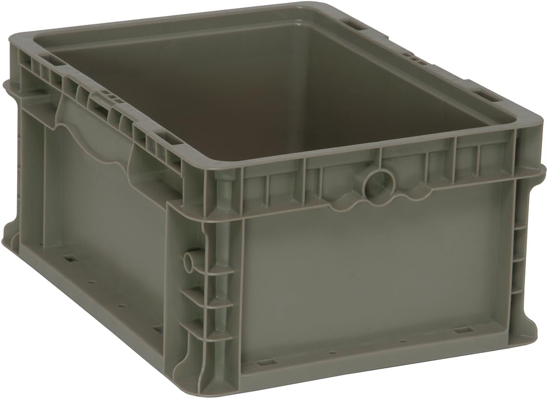 The Quantum QDC2420-12 Distribution Bin is designed to optimize the transportation and storage of goods, offering a dependable solution for a variety of organizational needs. Its sturdy construction and attached top lid provide secure containment, ensuring items are protected during transit or storage. With an 18.25-gallon capacity and overall dimensions of 19-3/8"W x 23-7/8"L x 12-1/2"H, this heavy-duty container is perfect for holding bulkier items, reducing the need for multiple containers and improving operational efficiency. The container’s ability to stack up to five high enables you to save valuable space while keeping inventory neatly organized. This versatile bin is ideal for streamlining workflows in busy environments. Use it to transport goods between locations or as a reliable storage solution for tools, equipment, or inventory. Its durable design ensures long-lasting performance, even in demanding conditions, while the secure lid prevents items from shifting or spilling during use. By simplifying storage and transport, this bin helps to improve productivity, reduce handling time, and support a more organized and efficient workspace, making it an essential tool for maximizing business performance.