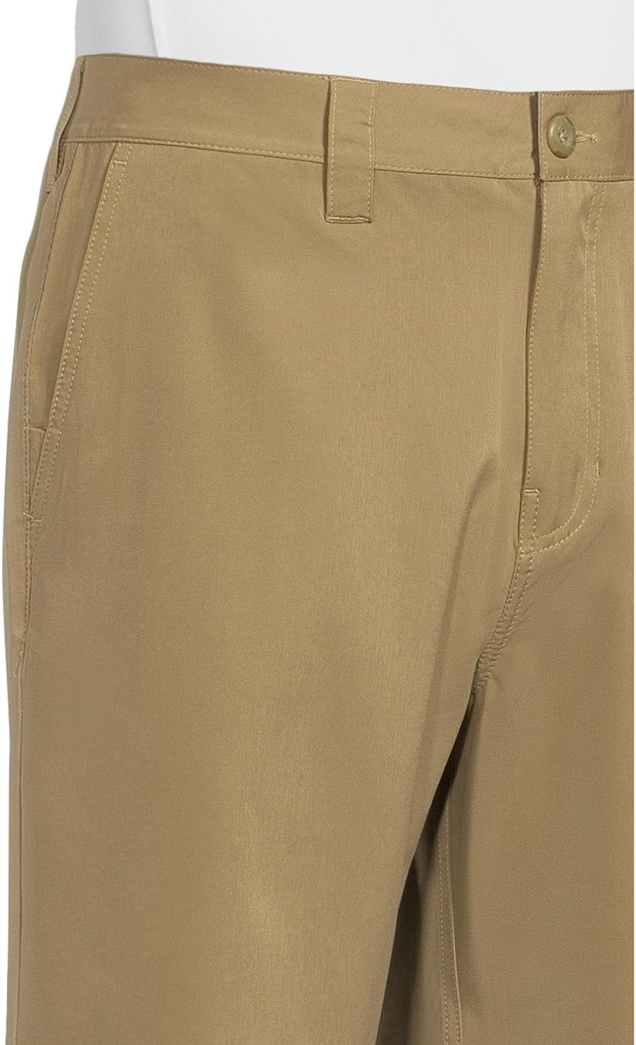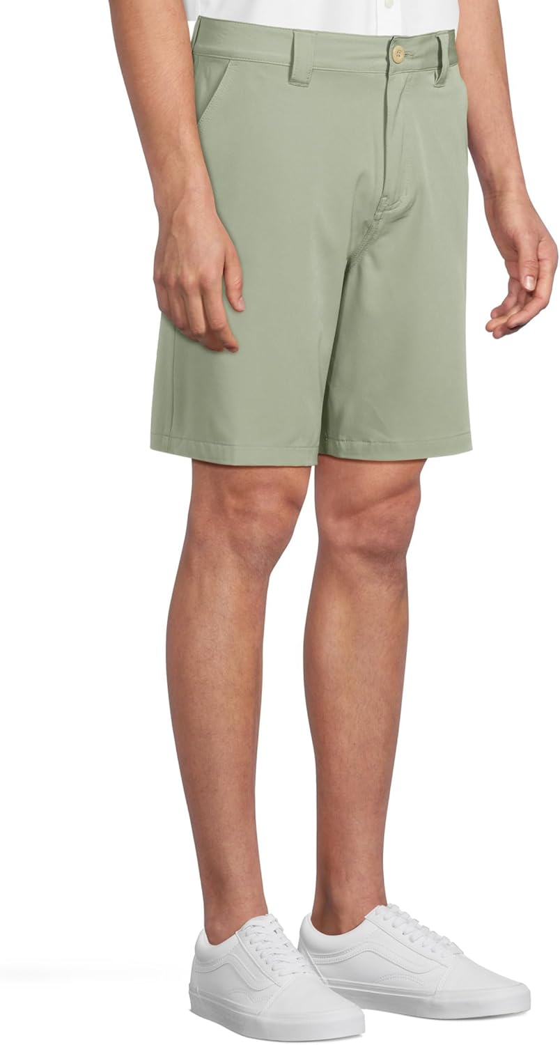 Amphibian Board Shorts for Men. Features include: Collection: Everyday collection, Fabric: 4-way stretch recycled polyester blend fabric, Sustainable SURFSILK fabric, tough on the outside, durable on the inside, Coating: PFC free hydrophobic treatment, Water repellent, Fit: Straight leg fit, Waist: Classic comfort waistband, Outseams: 20" outseam, mid length, Pockets: Side-entry pockets, Back left pocket with button closure, Back right pocket with water resistant auto lock zipper, Closure: Non-corrosive zip fly with button closure, Fly: Zip fly, Branding: Iconic Mountain & Wave logo, Other Features: Key bungee cord side pocket, Recycled yarn.
