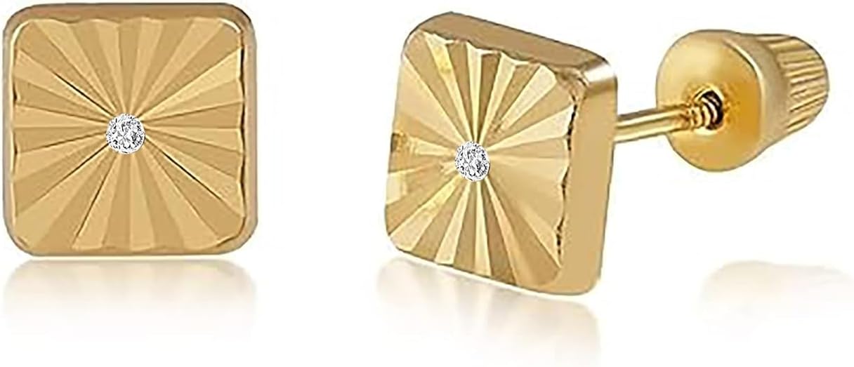 Real 14k and 10K solid Yellow Gold Tiny Stud Earrings with Screw back for Women And Men for Sensitive ears Small & Minimalist Studs Jewelry for Gifts