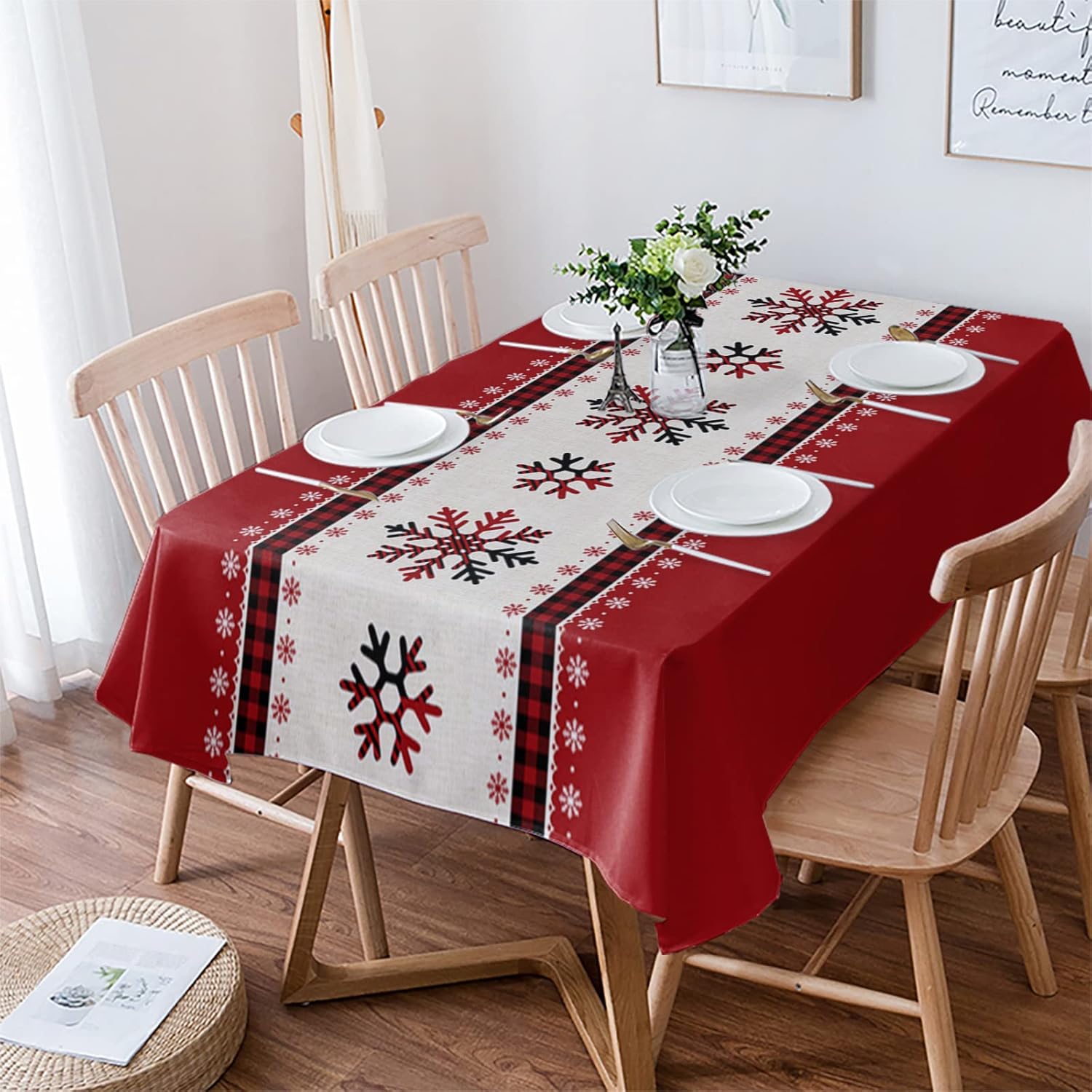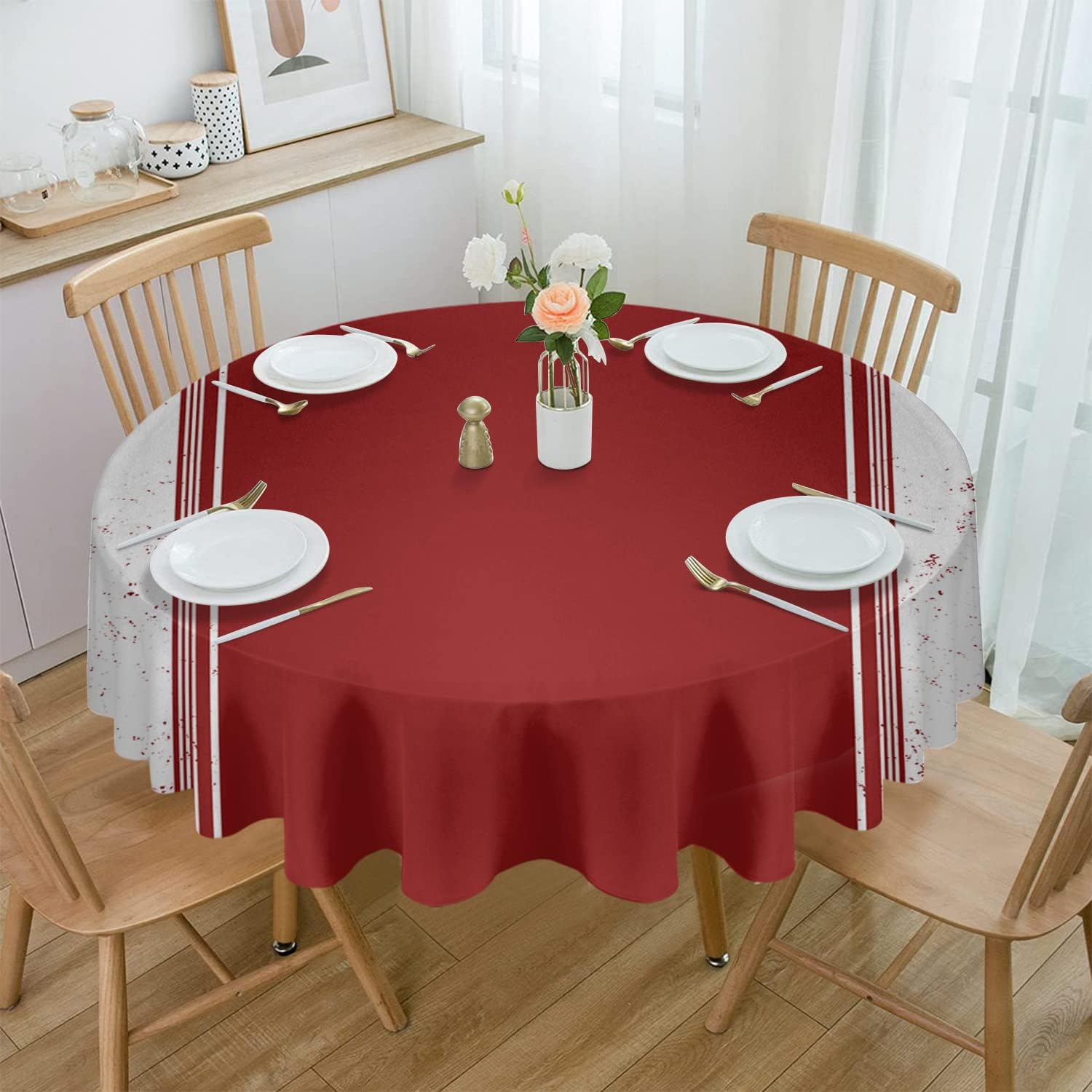 Soft and Skin-friendly Table Cloth design with bright color and unique pattern, add a sense of sophistication and elegance to your table. Feature Made of well treated fabric, this table cloth is smooth, soft, supple, spill-proof and non-wrinkle. Perfect to protect and decorate your tables. Spill Proof The tablecloth is made of premium polyester, and after a good waterproof treatment, all liquids will accumulate into beads, can be quickly wiped clean with a wet cloth or napkin. Occasion This unique tablecloth is applicable for any indoor and outdoor dining occasion either for decorative or functional uses (Cafes, dinners, brunches, Potlucks, picnics and more). Decor It can easily fit in your dining scene and dress up your tables and furniture. Different color and size match different styles of your furniture, creates a warm and festive setting for everyday use! Suitable for farmhouse, kitchen or outdoor use. Exquisite Workmanship This tablecloth is made by skilled artisans. The hem is designed with folded border and fine stitching to ensure elegant looking and no loose threads. It can also be a good choice as a gift on Thanksgiving, Christmas and Valentino Day. Easy Care Machine washable, no bleach. Wrinkle free after ironing. Please Noted * Due to the different methods of measurement, there will be few 1~2 cm deviation. * The size showed is the tablecloths size but not your table size. Please measure your table size before purchasing. * Due to different computer/screen displays, the color of the product may be a bit different from the picture.