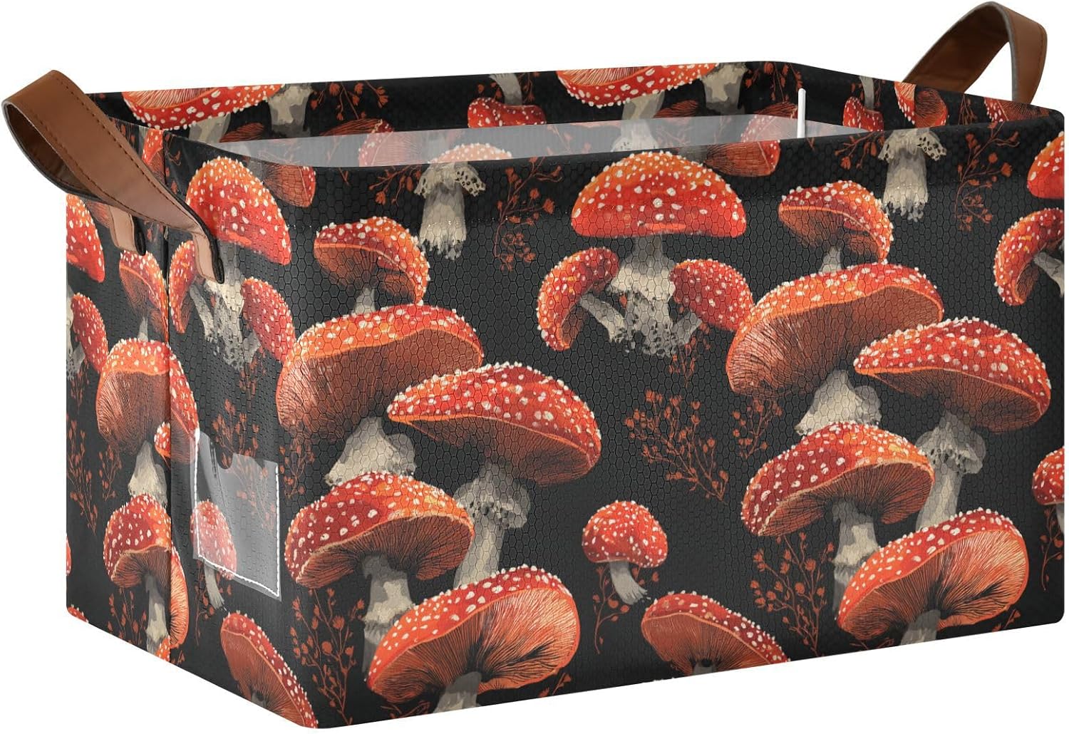 YNNALE storage bins have spacious capacity, measures 16.9(L)" x 11.4(W)" x 10(H)"; this large size enables you to store a wide variety of items to keep your home tidy and organized. YNNALE storage baskets are made of stiff cardboard on the bottom and all sides walls so that the organization bins stand on their own, even when empty; sturdy materials ensure that these storage containers are strong and long-lasting. The leather handles are thick and nice, has great stability and well-constructed.YNNALE Fly Agaric Amanita Mushrooms Pattern on Black Background decorative storage bins are designed to fit perfectly on laundry organization and storage, in closets, or under beds, office supplies,maximizing your storage space and keeping your home clutter-free. And this basket organizer is a great option for organizing and storing clothes, shoes, toys, pet products, toiletry storage, laundry clothes, bed sheet, sport gears, magazines & books, CDs, towels; the collapsible storage cubes can be easily stored in closets, drawers, shelves, etc. YNNALE fabric baskets are easy to clean, simply dust with a soft dry cloth. Due to the metal frames, we recommend that you hand wash, do not rinse, do not need to wring, and hang to dry. It is also collapsible for easy storage if not in use, simply fold the basket down flat for space-saving storage when not in use.YNNALE storage basket has different themed patterns and colors, can match your adorable home with different style and it is pretty enough to be used as a decoration. Whether as a housewarming gift this storage bins are most suitable! Great for Birthday days, Mother's Day, Valentine’s Day, Easter, Fourth of July, Memorial Day, Father’s Day, Thanksgiving, Harvest, and Christmas.