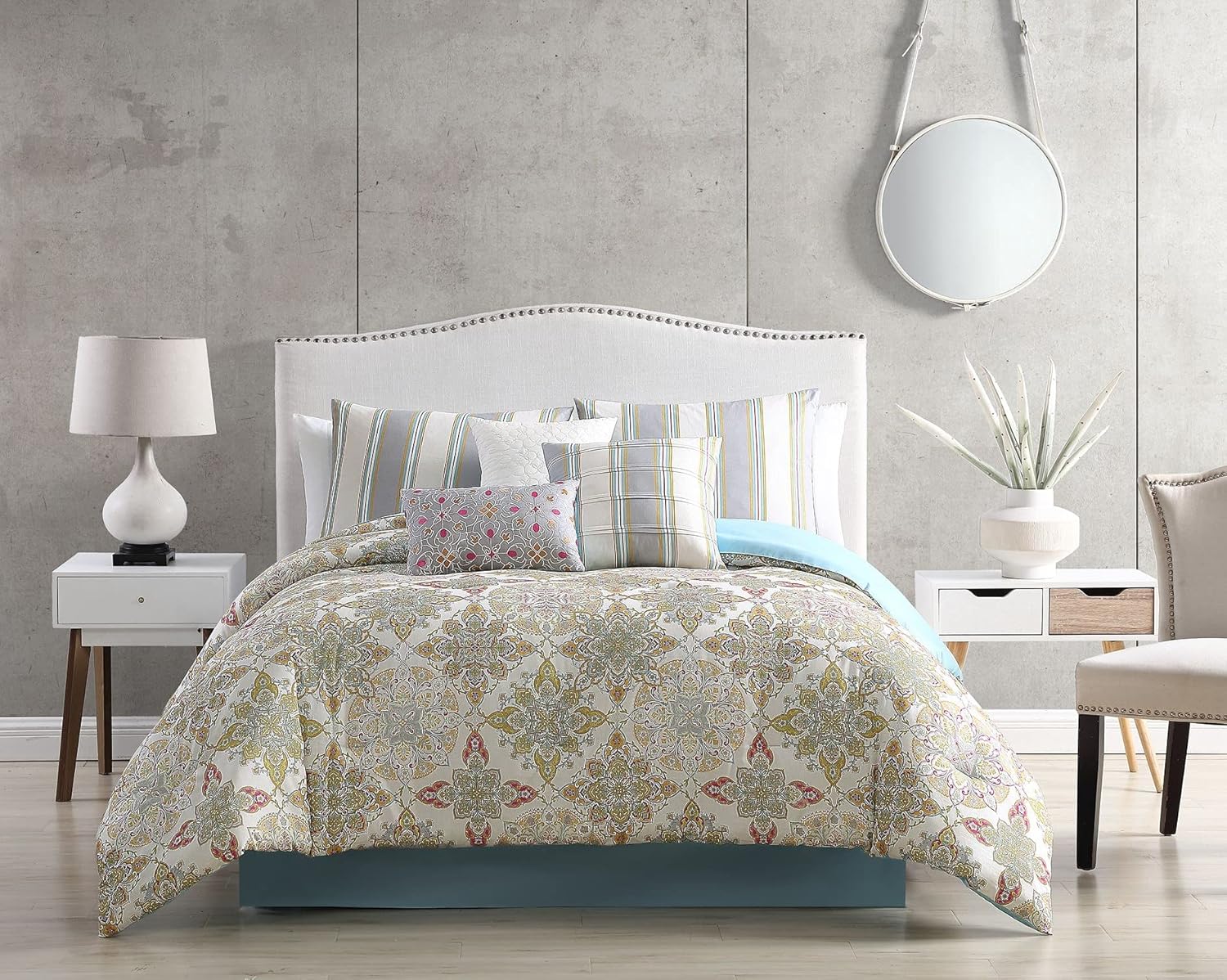 | Included Components | 3 Decorative Pillows, Bed Skirt, Comforter, Pillow Sham |