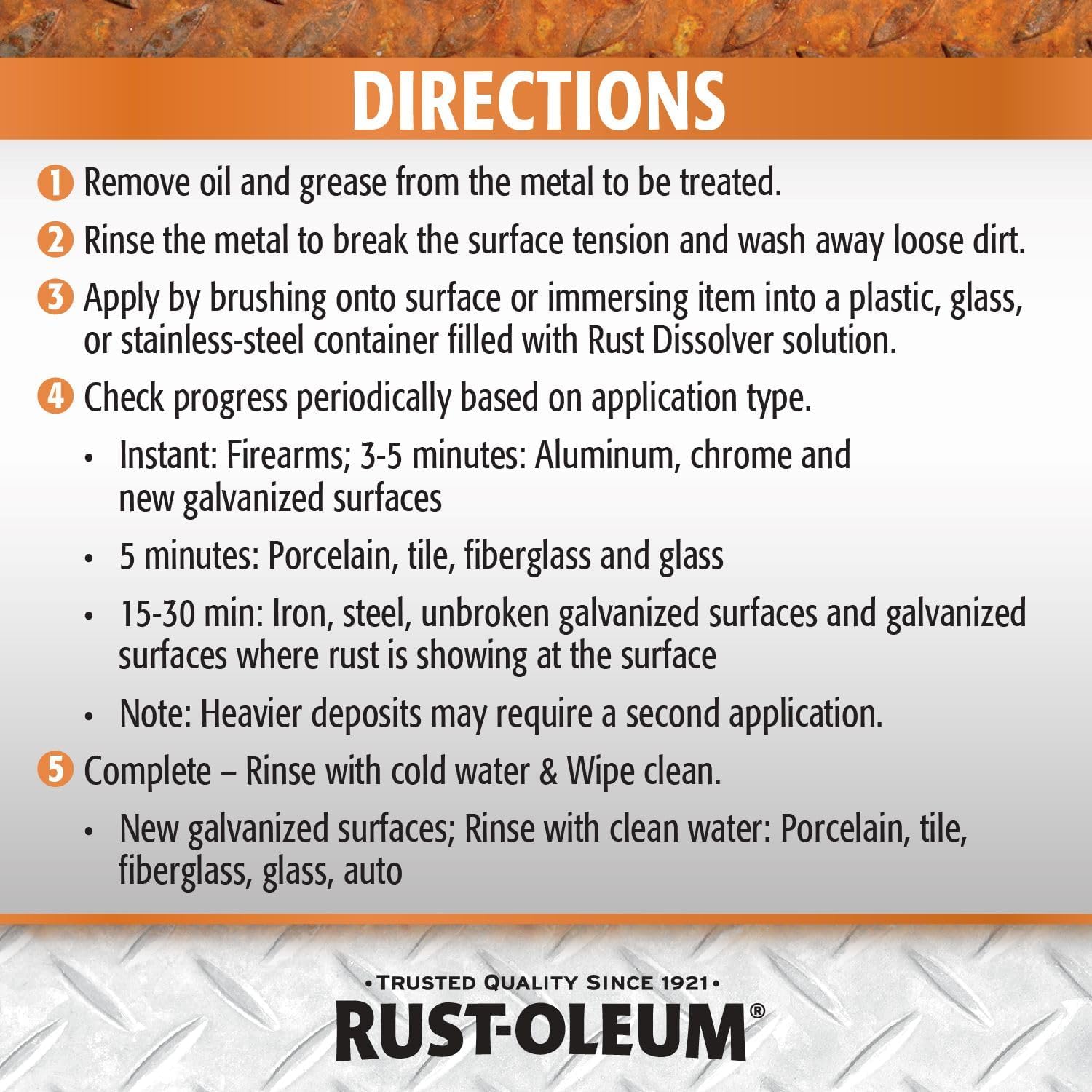 Rust-Oleum Rust Dissolver Bath is designed to quickly remove rust and prevent its return. Soak metals in or brush on liquid to eliminate corrosion and oxidation. Creates a smooth surface that is ready for painting.