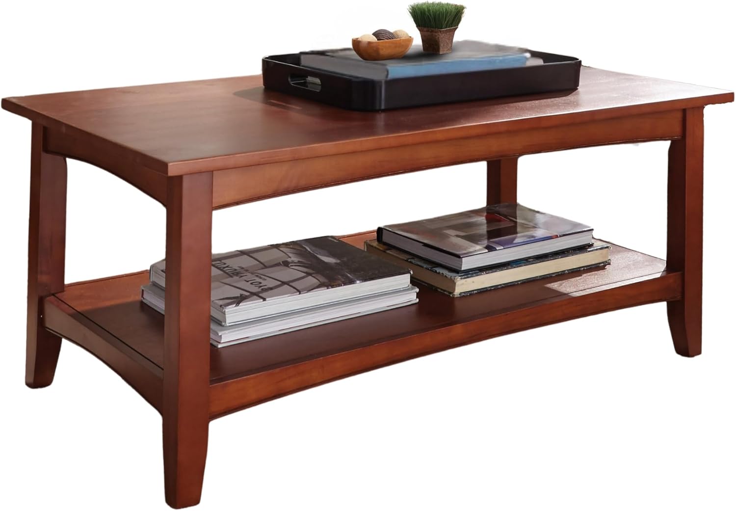 The Alaterre Shaker Cottage Rectangular Coffee Table with Open Shelf will bring elegance and practicality to any room. Boasting a transitional yet classic design, this sturdy and durable coffee table is constructed from select hardwood and composite woods for extra sturdiness and longevity. The espresso finish will match any décor. The coffee table provides ample top surface for decorative accents or items, while the open bottom shelf can store books, remotes, albums, and more. This item also features spacious bottom shelf, and adjustable floor levelers. The 8.75-inch space between the top and bottom shelf will ensure you can organize your items perfectly, bringing a finished and tailored look to your living room. Important: Alaterre Furniture is committed to providing the consumer with the absolute best price and value on all of our products. Note: This is an exclusive product of Alaterre Furniture and only Coffee Tables by Alaterre Furniture are guaranteed to be genuine. Avoid buying counterfeit products and transacting with unauthorized sellers. Alaterre Furniture is a registered trademark protected by U.S. Trademark law and will be vigorously defended.