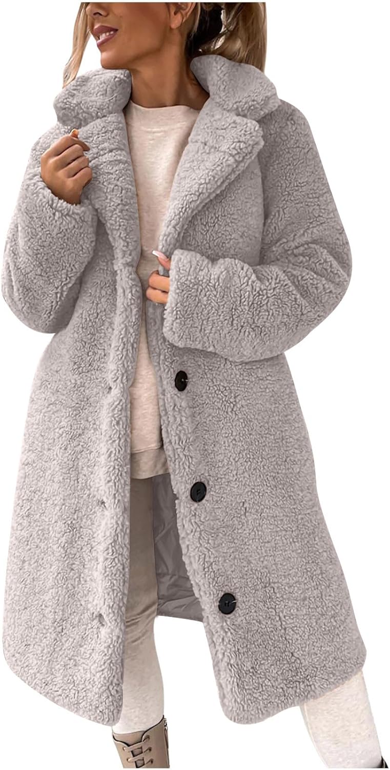 Sherpa Fleece Jacket Women Winter Coats Thicken Faux Fur Shearling Coats Fuzzy Warm Jackets Button Down Collared CoatSize:Small US: 4 UK: 8 EU: 34 Bust: 108cm/42.52'' Shoulder: 45cm/17.72'' Sleeve: 59cm/23.23'' Length: 112cm/44.09'' Size:Medium US: 6 UK: 10 EU: 36 Bust: 112cm/44.09'' Shoulder: 46cm/18.11'' Sleeve: 60cm/23.62'' Length: 113cm/44.49'' Size:Large US: 8 UK: 12 EU: 38 Bust: 116cm/45.67'' Shoulder: 47cm/18.5'' Sleeve: 61cm/24.02'' Length: 114cm/44.88'' Size:X-Large US: 10 UK: 14 EU: 40 Bust: 122cm/48.03'' Shoulder: 48cm/18.9'' Sleeve: 62cm/24.41'' Length: 116cm/45.67'' Size:2X-Large US: 12 UK: 16 EU: 42 Bust: 128cm/50.39'' Shoulder: 49cm/19.29'' Sleeve: 63cm/24.8'' Length: 118cm/46.46'' Size:3X-Large US: 14 UK: 18 EU: 44 Bust: 134cm/52.76'' Shoulder: 50cm/19.69'' Sleeve: 64cm/25.2'' Length: 120cm/47.24'' Size:4X-Large US: 16 UK: 20 EU: 46 Bust: 140cm/55.12'' Shoulder: 51cm/20.08'' Sleeve: 65cm/25.59'' Length: 122cm/48.03''