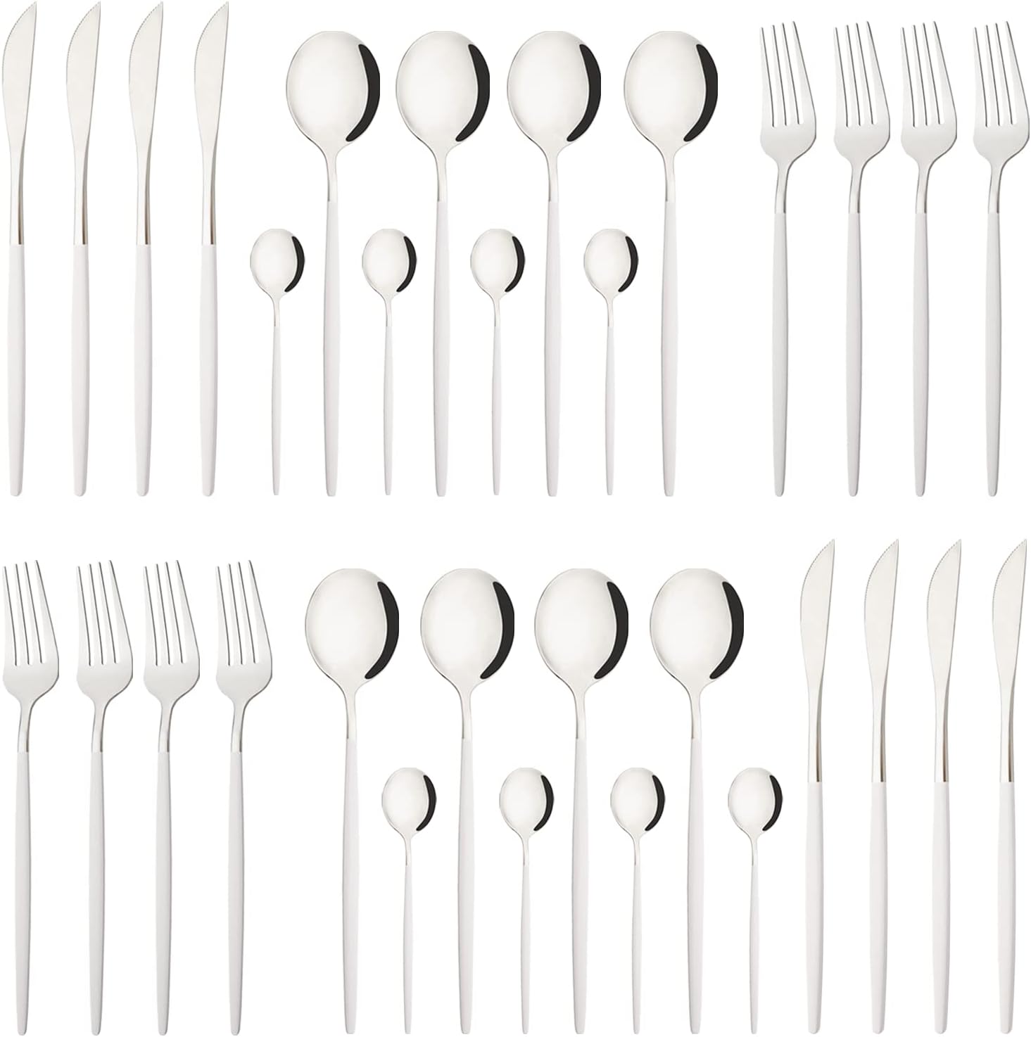 • 32 PIECE SILVERWARE SET FOR 8- includes 8 dinner knife, 8 dinner spoon, 8 dinner fork, 8 tea spoon. Silverware set that meets daily household use.