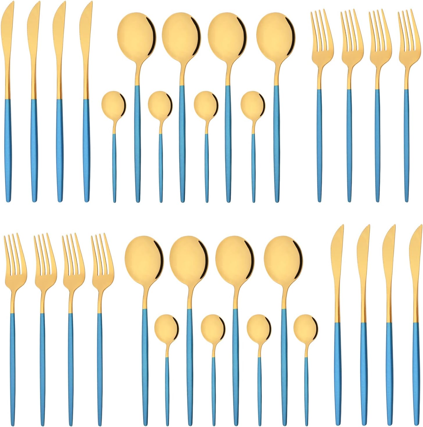 • THIS IS A SILVERWARE SET FOR 8-Very suitable for family gatherings, holiday gatherings, birthday parties, backyard BBQ, buffet, restaurant and wedding. At the same time, the flatware set also is a perfect gift for your family and friends.