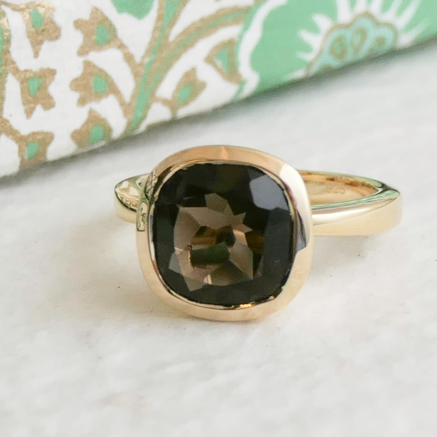 ✦✦ 10x10mm cushion cut bezel set smoky quartz is set in Gold Plated Sterling silver. ✦✦ Band is approx. 3.15mm✦✦ Please see my other rings for more styles. mother's day birthday christmas gifts for women girlfriend best friend bff sterling silver handmade prasiolite green amethyst cushion cut