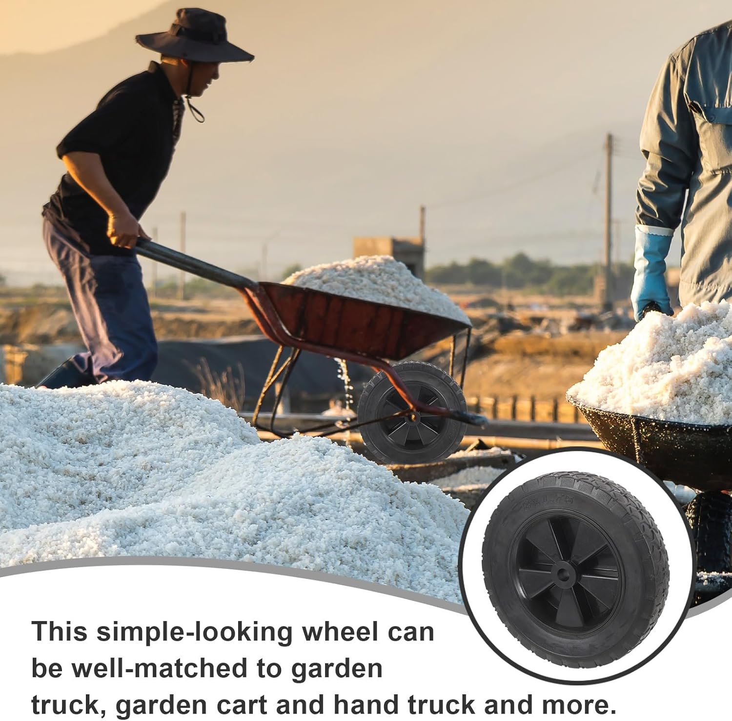 Package List 1 x cart wheel Features -Color:Black -Material:Rubber -Product Info:Rubber wheel trolley caster -Size:19.50X19.50X4.00cm/7.66X7.66X1.57in -With shock-absorbing performance, the utility wheel of carts can achieve a balance of traction and maneuverability replacement wheels. -Great for your garden cart, snow blower, lawn mower, generator, wheelbarrows and more caster wheels. -More flexible rotation, manufactured with safe and reliable rubber material, ensure its durability and practicability. -Wheel prevents punctures and avoids the hassle of frequently inflating the wheel replacement wheels for rolling cart. -Suitable for cement road, dirt road, asphalt road. Perfect for your Hand Truck, Trolley, Garden Utility wagon cart, garden cart, sack trolley lawn mower parts.Goods Descriptionreplacement wheels for rolling cart Wheel for trolley, Hand Truck, garden truck, garden cart, etc.wheel casters The wheel with good workmanship has good durability and wear resistance.wheel with inner tube Reliable and practical wheel, made of rubber materials, with excellent texture.walker replacement wheels Solid rubber wheel, no need to inflate, wear-resistant and durable