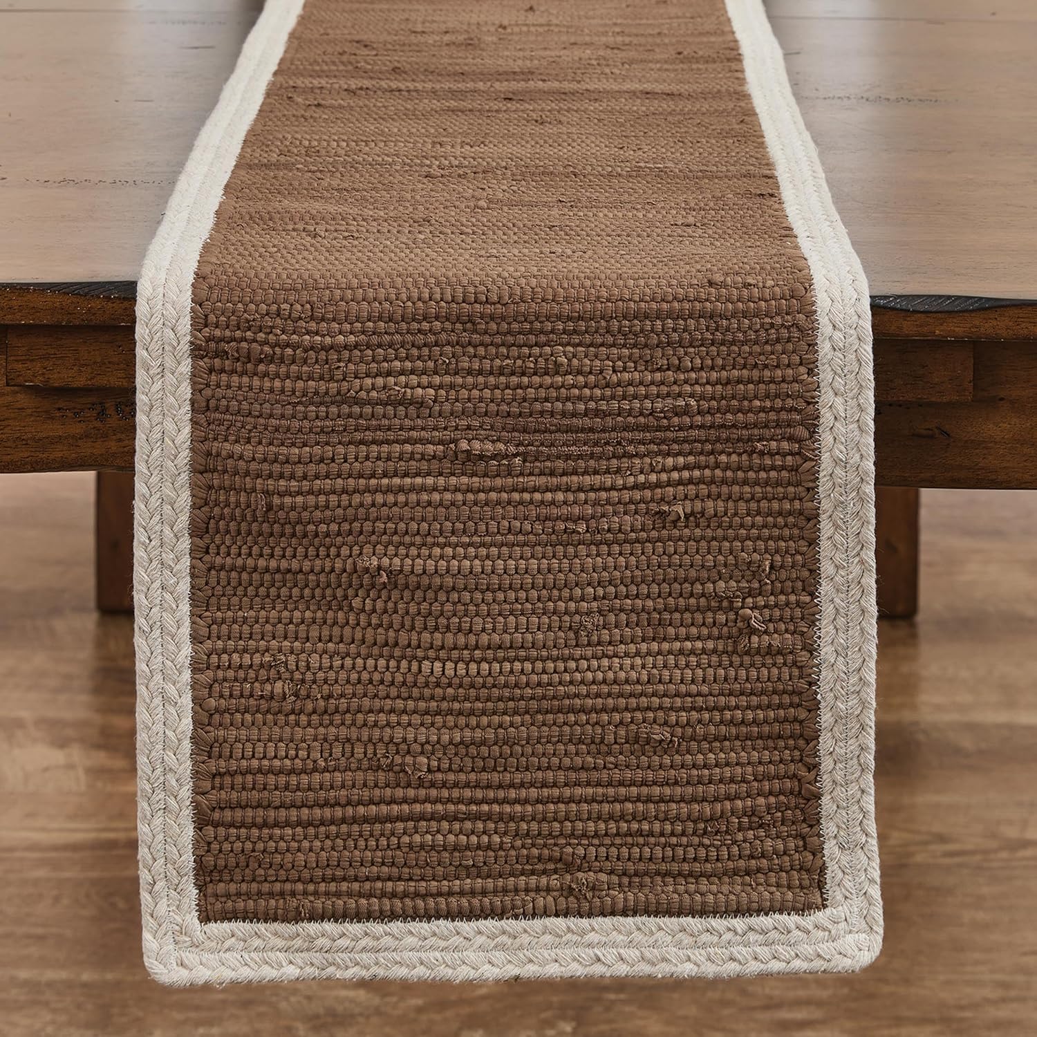 Introduce unique depth and interest in neutral tones to your everyday or seasonal table setting with this rectangular textured table runner that offers timeless elegance. Thickly woven with cotton and polyester material, this tabletop mat aesthetically enhances a dining room space as a stand-alone centerpiece backdrop or a decorative base layered with other table linens and display accents. The cream border and solid black color combines with the durable braided material to create a dynamic look. Perfect for a boho cozy touch in any country, rustic, bohemian, cottage, modern farmhouse decor, and more. Visually elevates a casual or formal dinner arrangement with a rustic charm!