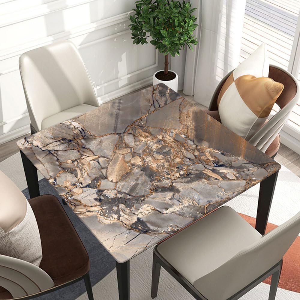 Square Elastic Edge Tablecloth with Marble Texture Background, Oval Shape with Elastic Polyester Fabric, Water-Resistant Decorative Cover, Party Setup, Home Decor