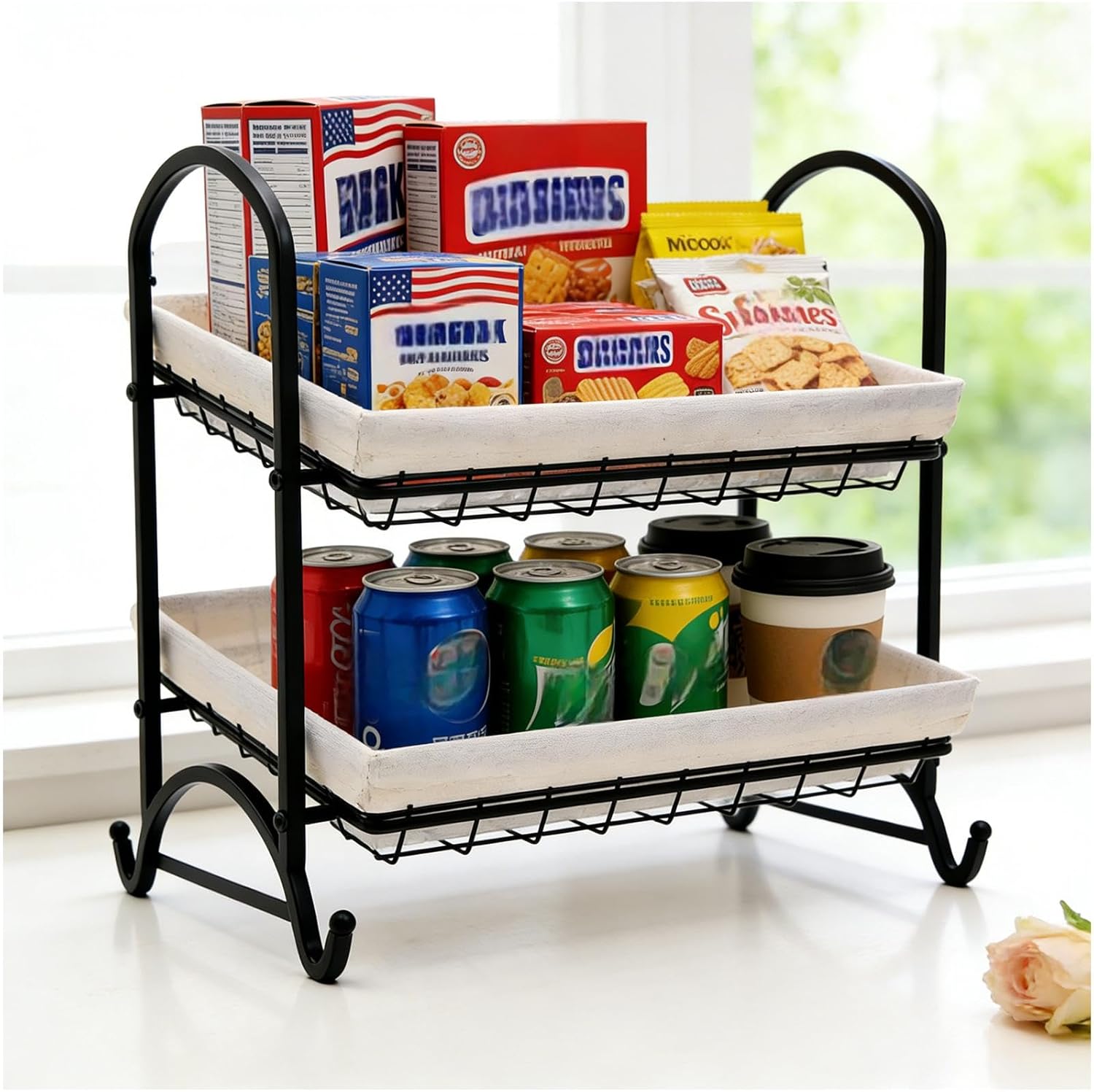 • DURABLE CONSTRUCTION&EASY MAINTENANCE--Crafted from thick wrought iron with a durable powder coat finish, this Snack Stand for Office or store setup is built to last. Its dimensions of 15.625L x 11.75W x 2.75H inches for the basket and 17.25L x 12W x 23.25 inches for the stand make it a perfect fit for various countertops. Simply wipe down with a damp cloth for easy cleaning.