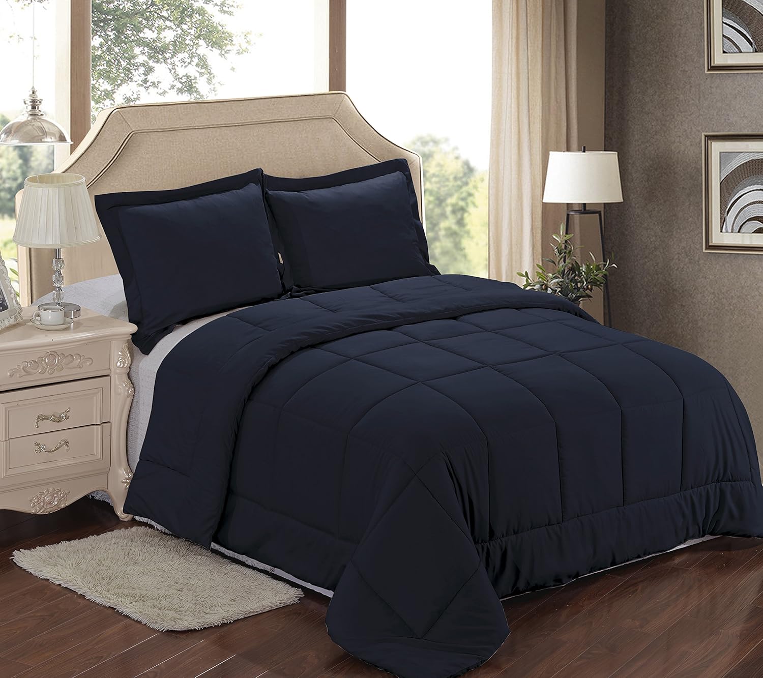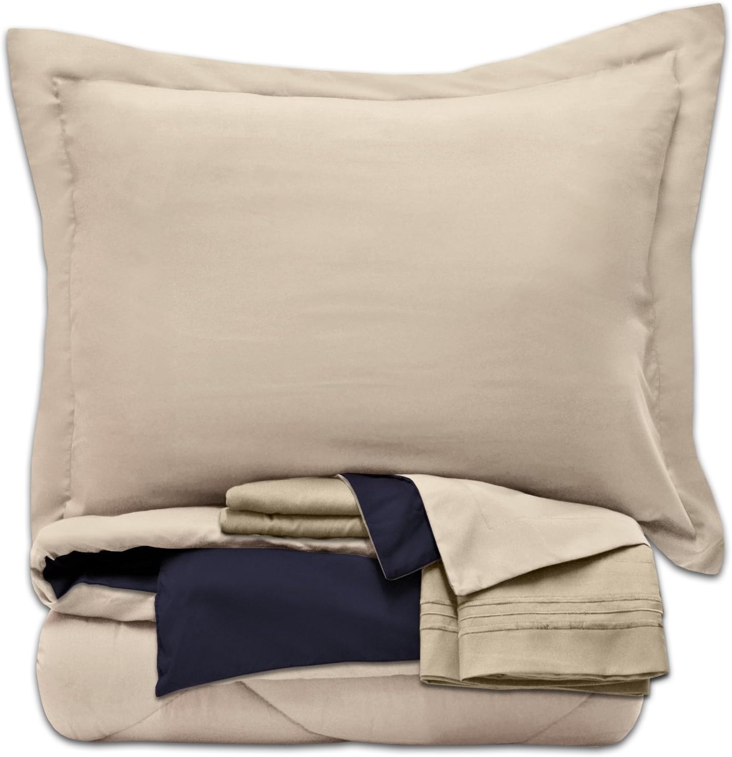 Add style, comfort and luxury to your bedroom with this fine bedding set. Featuring both boxed stitch and diamond stitch designs, as well as both solid and reversible color options, this set is the perfect way to transform your bedroom into a fashion statement. Made of soft, luxurious microfiber, these stylish comforters promote the great night's sleep you've been looking for, making every morning a refreshing one. 7 piece set includes: one fashion comforter, two pillow shams, two pillow cases, one flat sheet, and one fitted sheet. Note that Twin size only includes one pillow sham and one pillow case. Dimensions are as follows: king: comforter (102" x 86"), 2 pillow shams (20" x 36"), 2 pillow cases (20" x 40"), 1 flat sheet (102" x 105"), 1 fitted sheet (78" x 80") queen: comforter (86" x 86"), 2 pillow shams (20" x 26"), 2 pillow cases (20" x 30"), 1 flat sheet (92" x 102"), 1 fitted sheet (60" x 80") full: comforter (86" x 86"), 2 pillow shams (20" x 26"), 2 pillow cases (20" x 30"), 1 flat sheet (81" x 96"), 1 fitted sheet (54" x 75") Twin: comforter (86" x 66") 1 pillow sham (20" x 26"), 1 pillow case (20" x 30"), 1 flat sheet (66" x 96"), 1 fitted sheet (39" x 75") care instructions: machine wash in cold water with similar colors; tumble dry low; do not bleach
