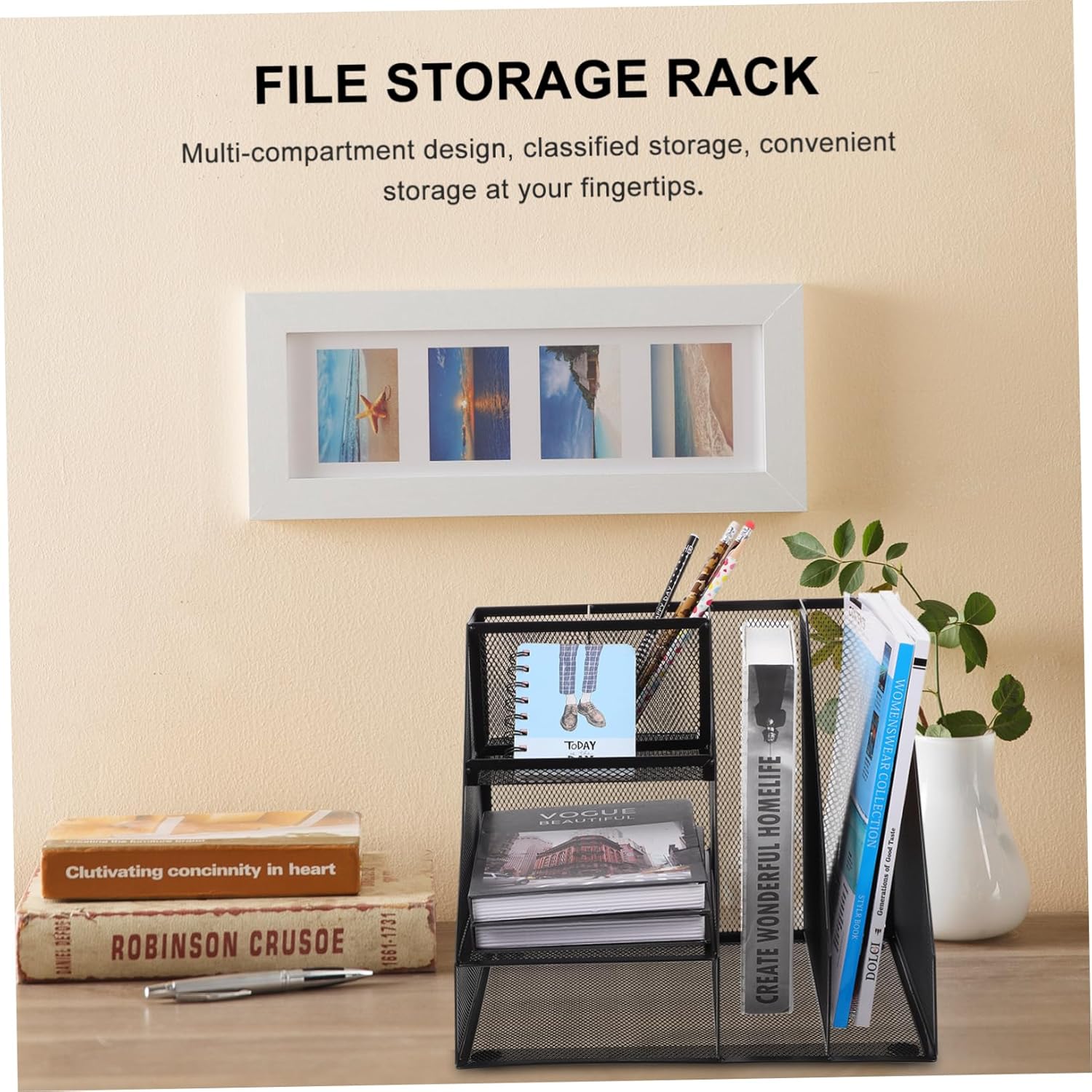 Package Include 1 x Desktop Organizer Characteristics -Size: 31.00X25.50X25.50cm/12.18X10.02X10 chic. -Color: Black Document Rack -Material: Iron vinyl -Classified storage design, convenient storage, allowing you to find the documents and items you need clearly and quickly file. -Selection of high-grade iron material, sturdy and practical, which can withstand the long-term use File Rack. -Creative and simple in structure, provides convenience to take out and put in book accessories. -Multiple-compartment design, ornamental and practical, offers you bigger storage room display. - for school dorm, study room, office, etc., to store files, books, notepads, etc desk organizers.Goods Informationdesktop bookshelf organiser The simple look design is very practical and .Multifunction File Rack Can be used for books, files, documents, newspaper and some other items' storage.paper shelf organizer The simple and practical multi-compartment file rack is made of material and the file rack is stable and reliable, not easy to damage