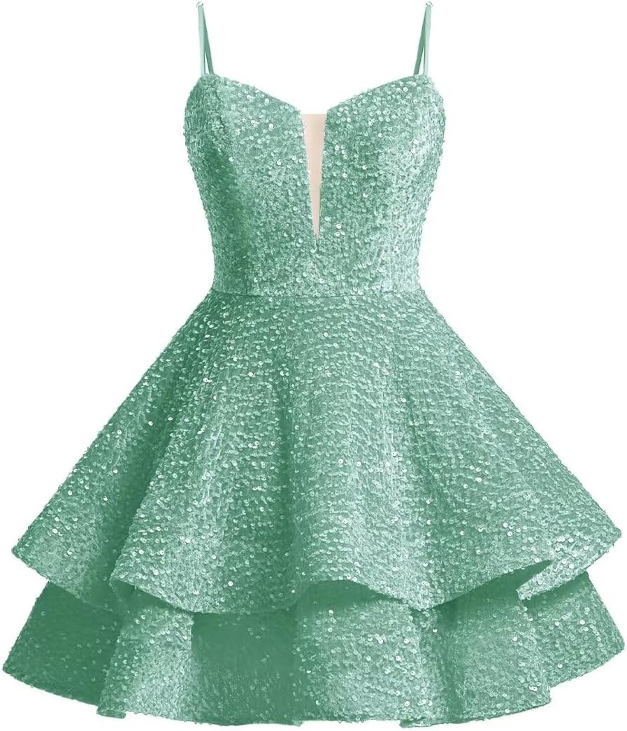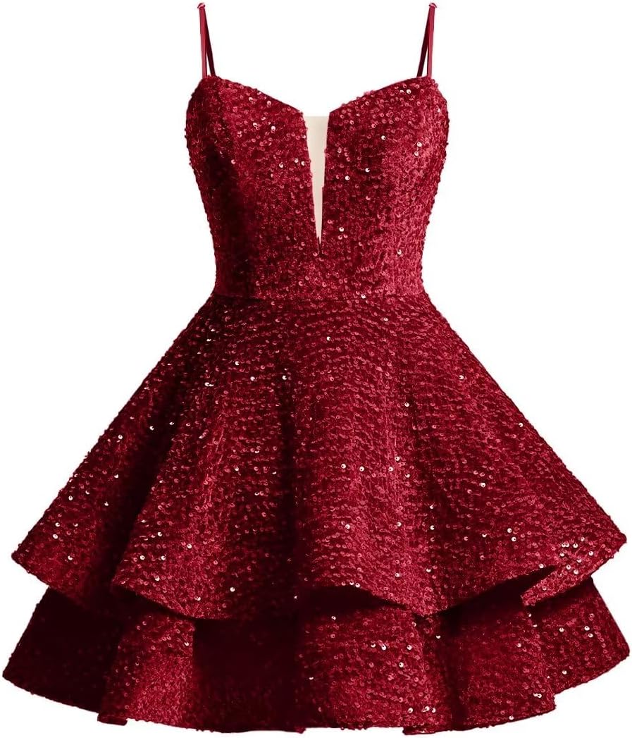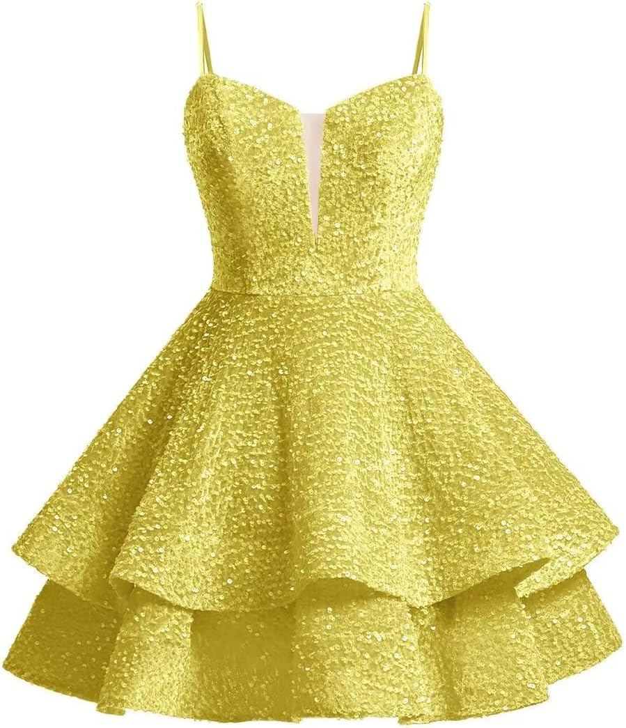 | Fabric Type | Quality tiered sequin homecoming dresses for teens, sparkling, fully lined and built-in bra. |