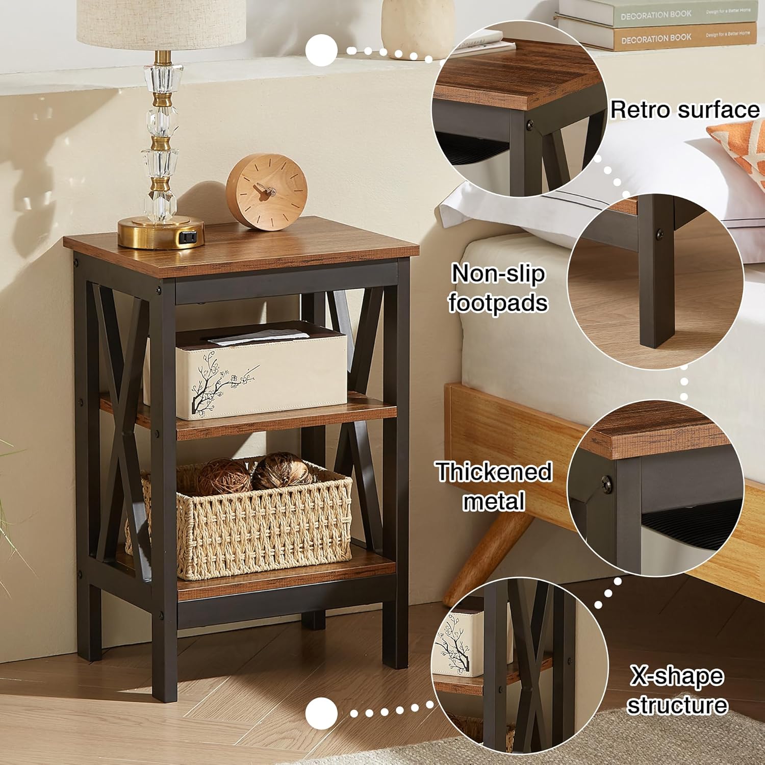 VECELO Modern Nightstand:Video for Easy AssemblySearch Assembly of VECELO Nightstand3-YEAR quality guaranteeCompact Size NightstandSpecifications:Nightstand Color: Rustic BrownNightstand Dimension: 15.8 x 11.8 x 21.5inMaterial: Steel Frame, ParticleboardPackage Includes:2 x End tables1 x Instructions1 x Assembly BagTips:Please read the instruction carefully before assemblyEnsure all parts and screws are firmly attached before use