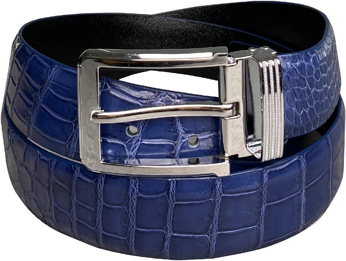 Be an exception in the style department by wearing this golf dress belt presented to you by VINACREATIONS. High-Quality: Our Navy Blue aIIigator belt is unique because it is made from the croc, not from the embossing pattern cow leather, thus lending it a polished look along with a natural sheen. Besides, it comes with a automatic buckle closure so that it is convenient to wear giving a Luxury, Soft texture, Comfortable, Shiny, Durable and Elegant look. Belt Size: Full Length: 48'' ; Belt size ( 45" - 29" ) ; Width : 1.5" . Five holes along the leather belt allow adjustability and flexibility to obtain your perfect fit complemented with a removable buckle that enables you to trim your croc belt to your ideal size. Please measure carefully your waist as the size chart in the detail page or your current belt size to fit perfectly. Best Gift: These AIIigator belts automatic buckle are high quality, soft material & beautiful design by Vietnamese craftsmanship. Our fashion leather belt is the nice gift for daddy, boss, colleague, grandfather, boyfriends, husband,… on Birthday, Christmas, Anniversary. Note: Since these are made from leather so there may leather be some differences in the grain and pattern but generally, they are similar. Color: the colour may slightly vary due to photographic lighting sources or your monitor settings Custom: We are a seller as well as a maker so if you want to have customized other sizes, please let me know. I will make it as your request. If you have any problem, please feel free to contact us. We always here to support you.
