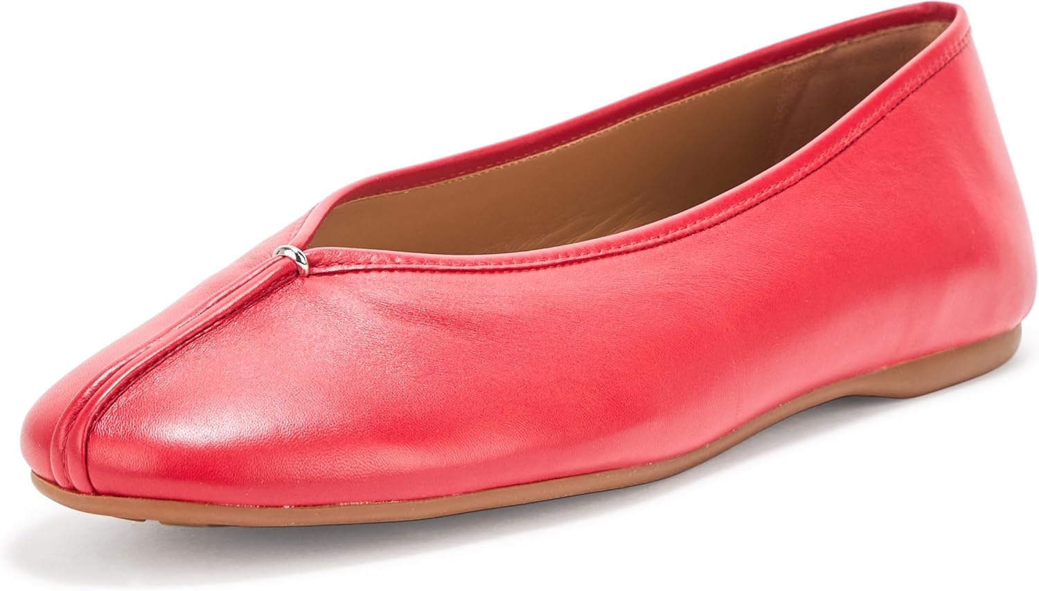 Soft leather panels are held together down the center with a small metal bar accent for a refined, deconstructed spin on the timeless ballet flat. At the bottom, a rubber outsole provides discreet traction.