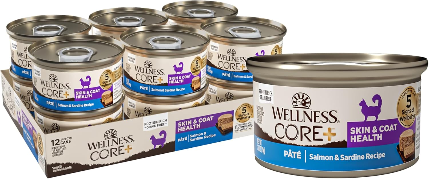 Wellness CORE+ Indoor wet cat food recipe is protein rich and uses high-quality ingredients to support whole-body health. Each CORE plus recipe is thoughtfully crafted to support the five signs of wellbeing plus the unique nutritional needs of your cat. This Indoor recipe has lower calories to help indoor cats achieve and maintain a healthy weight. Each grain free, nutrient-rich formula provides high quality protein for your cat with no Artificial Flavors, Preservatives, or Colors and is Carrageenan Free.