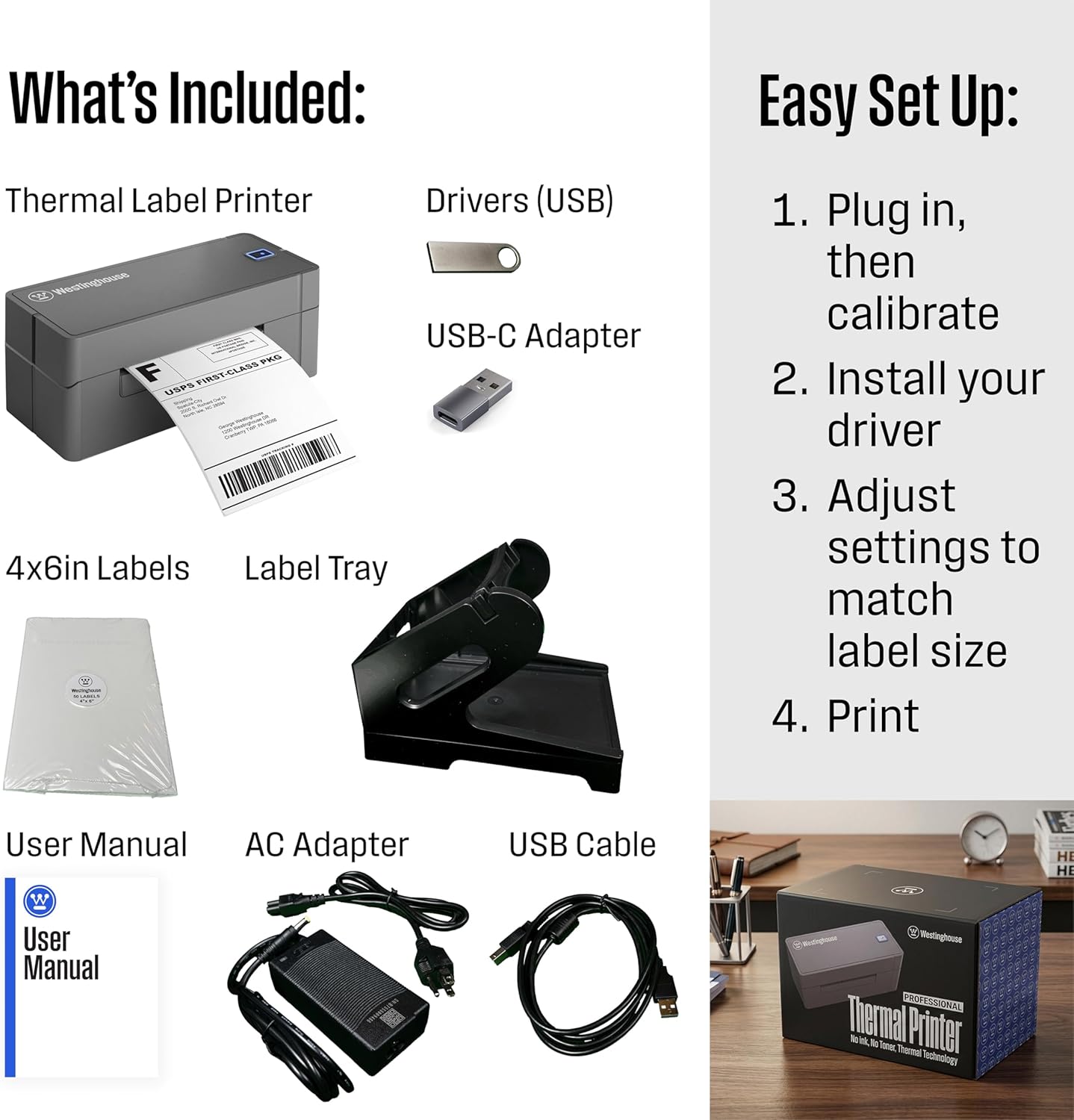 | BuiltIn Media | Sample labels, label tray, USB-C adapter, AC adapter |