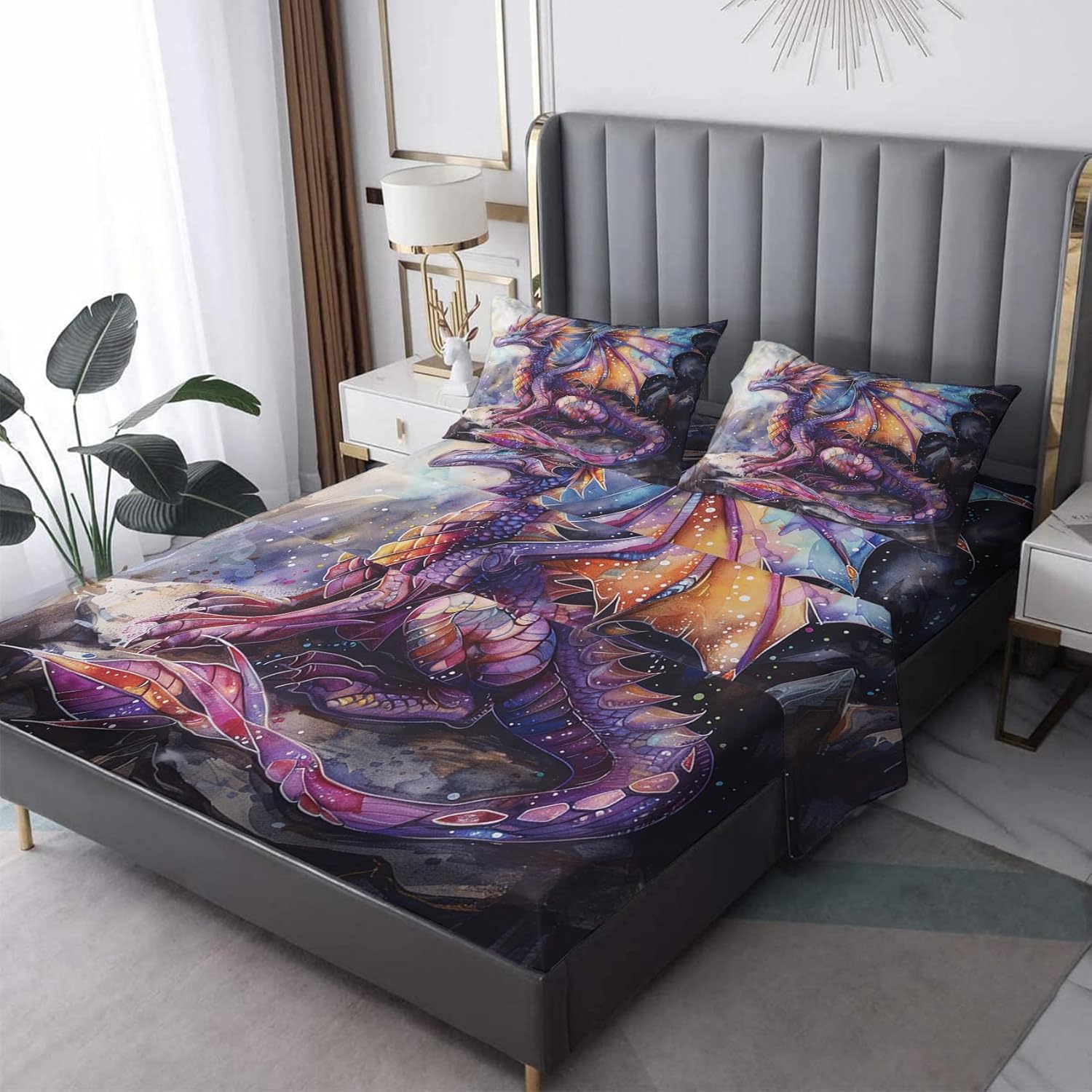 DECORATIVE SHEET & PILLOWCASE SETSVivid and chic printed sheet set can add color to your room. Easily match the style of your room.Twin Size1 fitted sheet 39" x 75" + 16", 1 flat sheet 66" x 96" and 1 pillow sham 20" x 26"Brushed MicrofiberOur sheet sets are made of premium 110 GSM (grams per square meter) double-brushed microfiber fabric, providing a substantially higher smoothness and softness, while most sheets are made with 75 – 90 GSM.Lightweight & BreathableDesigned to perfection, this sheet set is extremely skin-friendly, lightweight and breathable to keep you comfortable in any season.Convenient DesignThis fitted sheet set is equipped with all-around elastic for a snug fit around the mattress. Sleep easy without the bed sheets moving around.The pillowcase features a zipper design that makes it easy for you to insert and secure the pillow.Room Decorations & GiftsThe sheets set is long-lasting, printed with our carefully selected patterns, using advanced HD printing and dyeing technology, just to add a touch of comfort and pleasure to your life.It can complement the decorative style of any room in your home: bedroom, kids room, guest room, vacation home, etc.This beautiful bedding is also an ideal gift for family, friends, boys, girls, and relatives on various holidays.Easy to MaintainMachine wash in cold water, gentle cycle, tumble dry low, do not bleach.ServicesAny questions, feel free to contact us, we are always here for you.