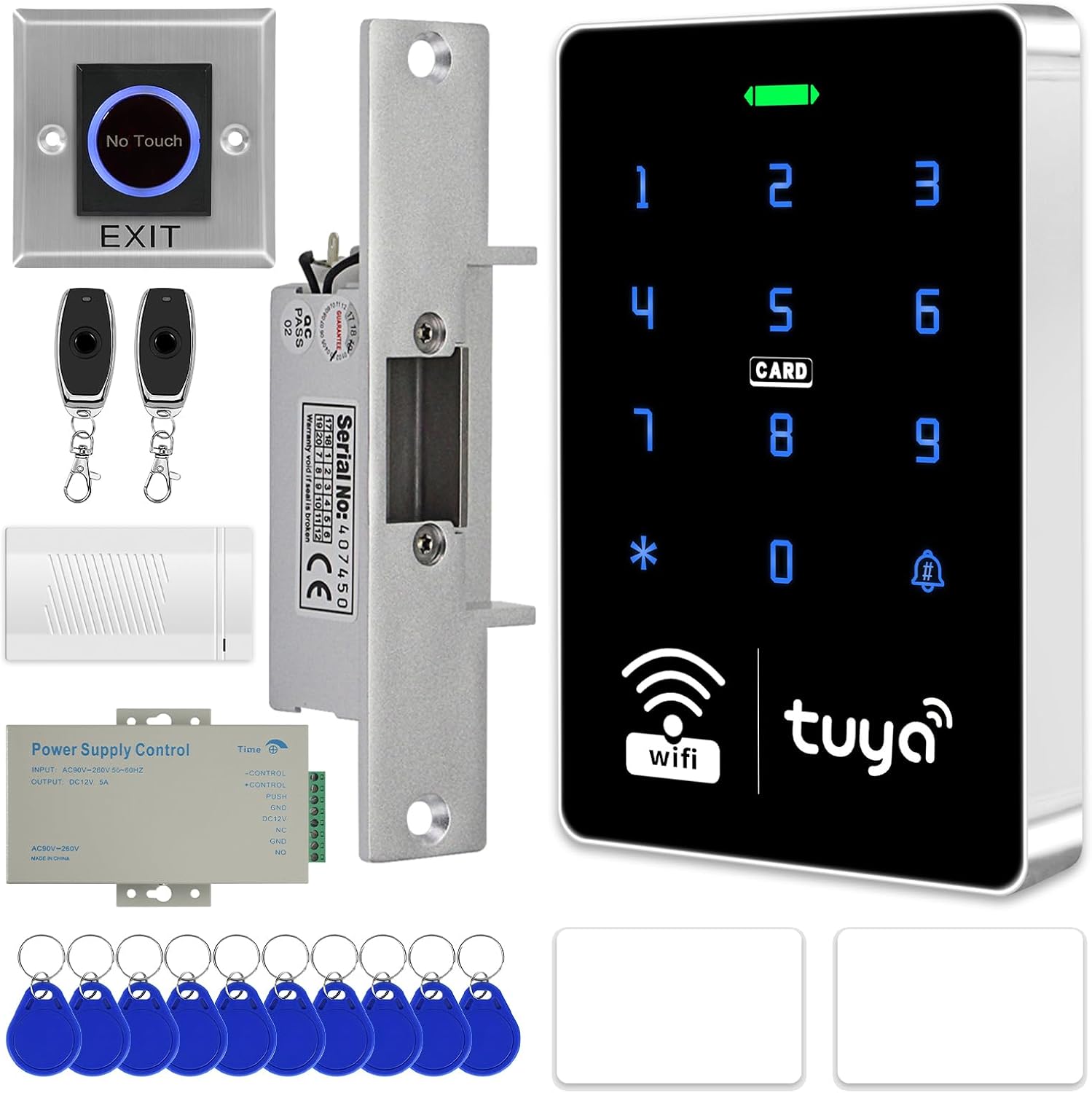 | BuiltIn Media | Access control keypad + power supply + 280kg magnetic lock + exit button + doorbell + remote control + keychain |