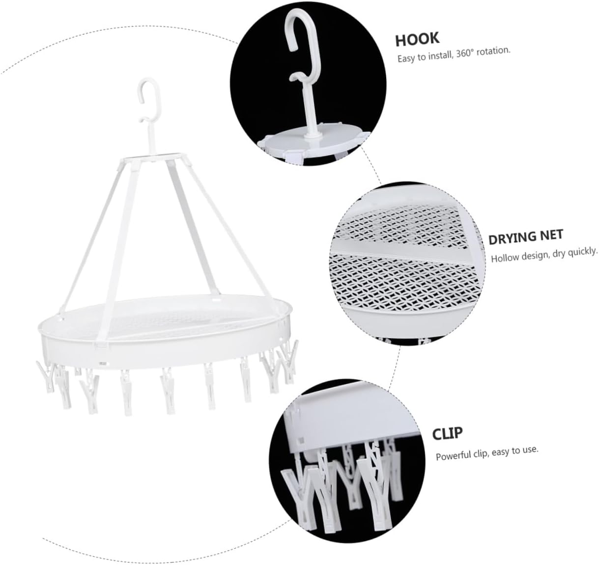 Package List 1 18 x clips 4 x hanging lanyards Characteristics -Color: White -Material: PP -Product Info:Drying rack -Size: 50.00X50.00X40.00cm/19.65X19.65X15.72 in. - You won't face short of hangers and take less space by using this hanger clothes drying hanger. - Great handy item to organize your closet, the possibilities are endless! bras drying hook - Suitable to hold and dry socks, bras, cloth diapers, towel, underwear, scarf or other small delicate items underwear drying rack. - The clips of the hanger are perfectly spaced to efficiently maximize air flow bras drying rack. - The lightweight design is perfect for camping, outdoor, business trip, travel or vacation bras drying hanger.Goods Descriptionunderwear drying hook Multi-functional hanger can be used in various occasions, such as small clothes, clothes, underwear, masks, bras, shorts, handkerchiefs, towels, gloves, socks, scarves, hats, ties, cloth diapers, etc.towels drying hanger It is easy to hanging on laundry room, wardrobe, closet, shower curtain rod, outdoor clothesline, etc