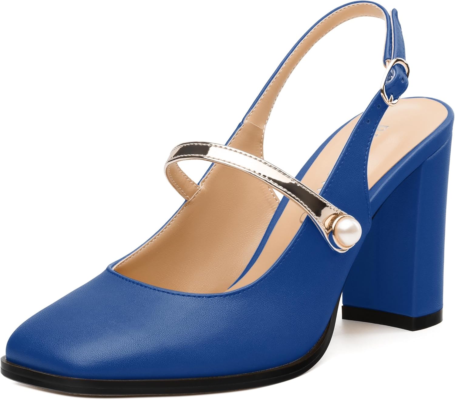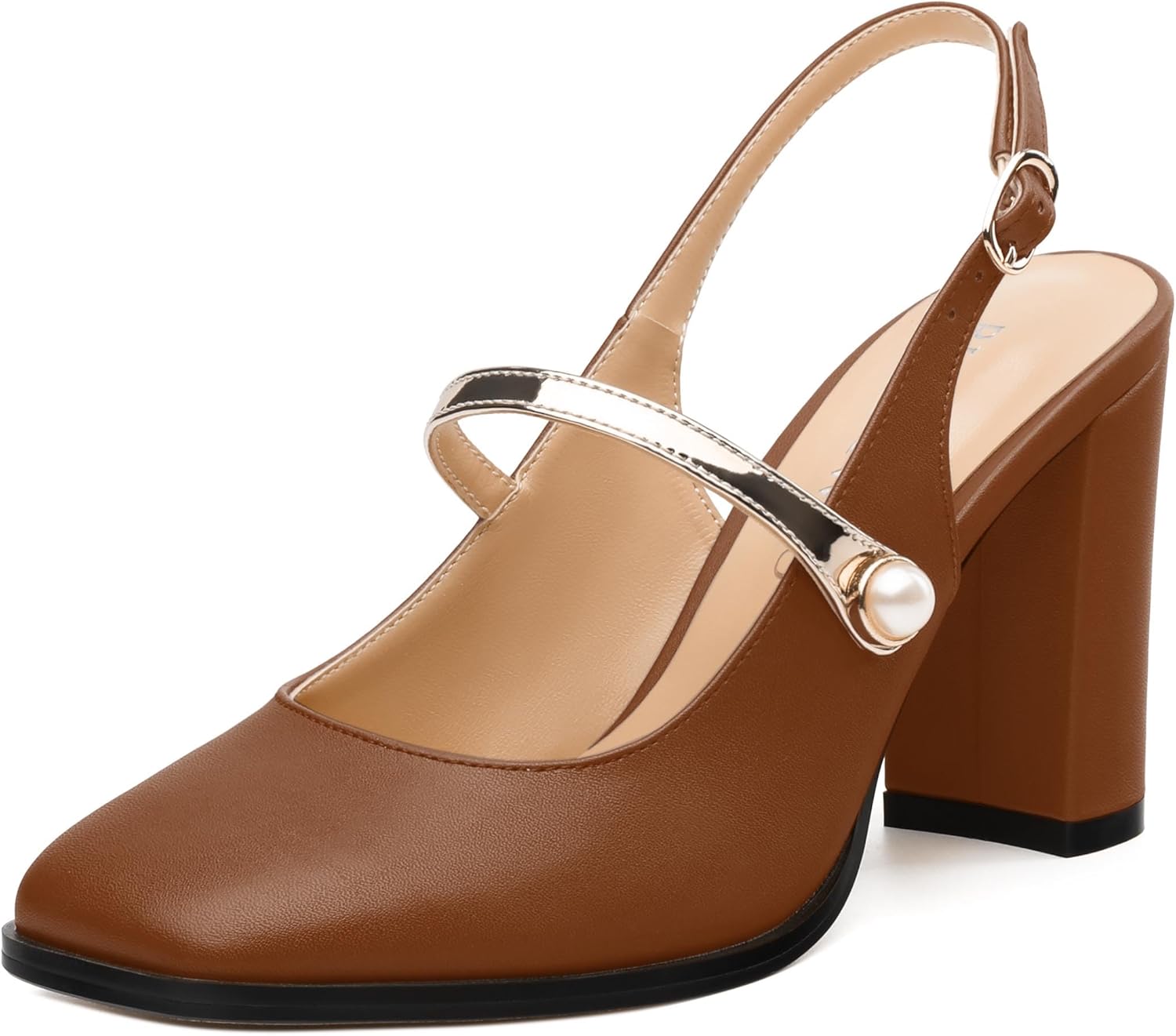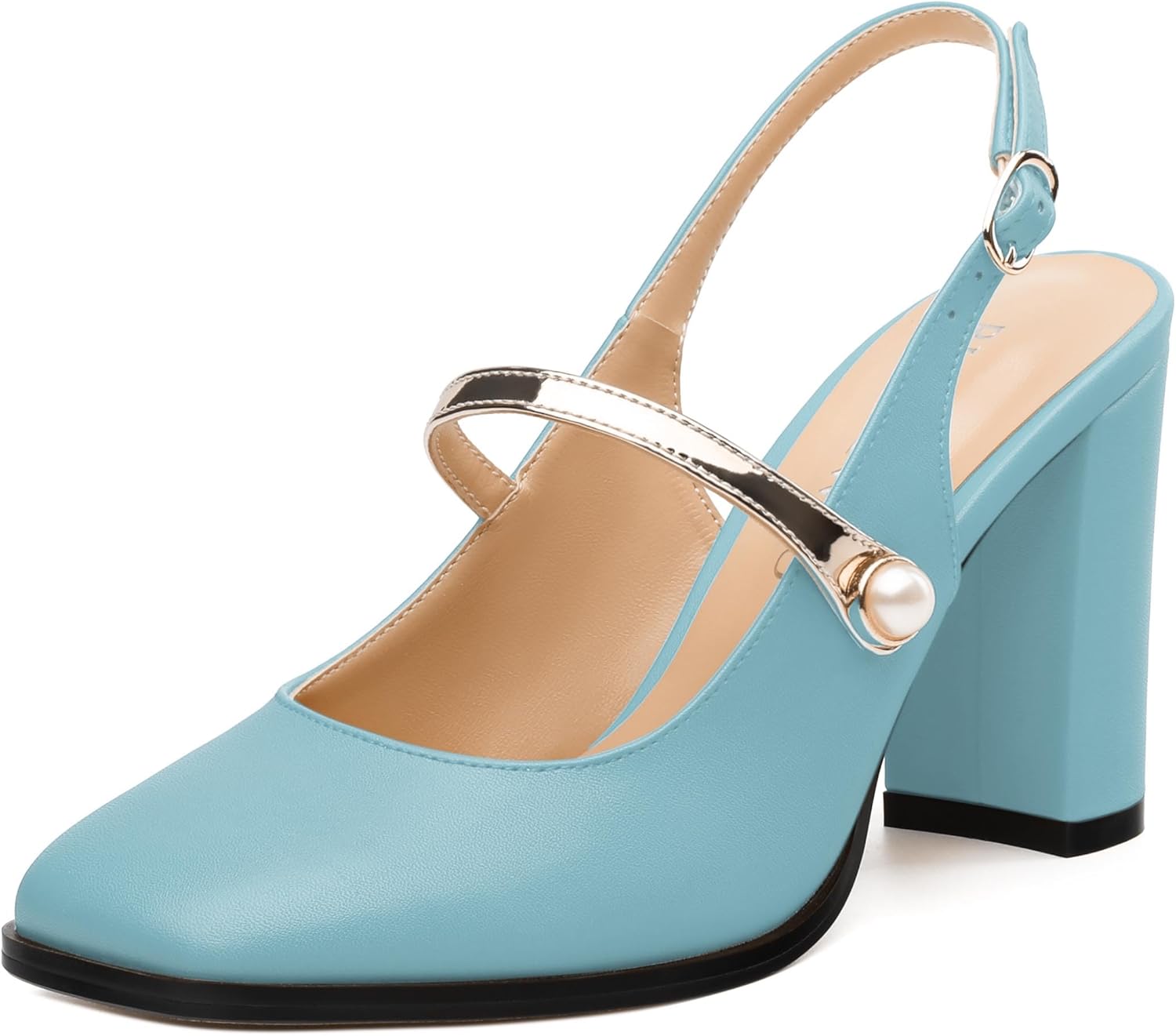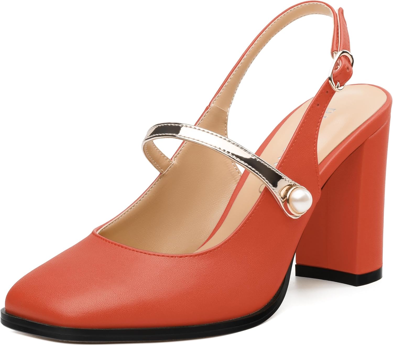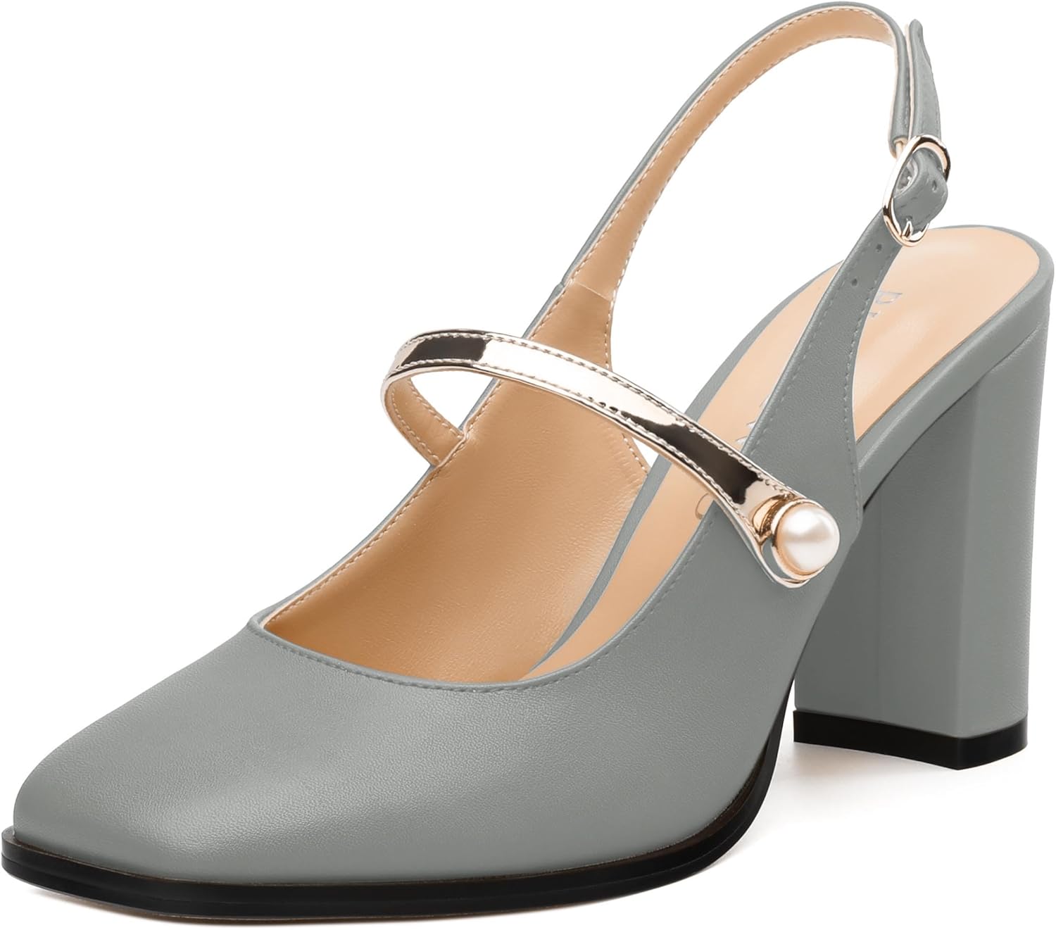 • Stylish and Elegant Design: The RLYGHWAO Women's Slingback Pumps feature a sophisticated square toe and a chic backstrap adorned with pearls, making them the perfect choice for adding a touch of class to any outfit.