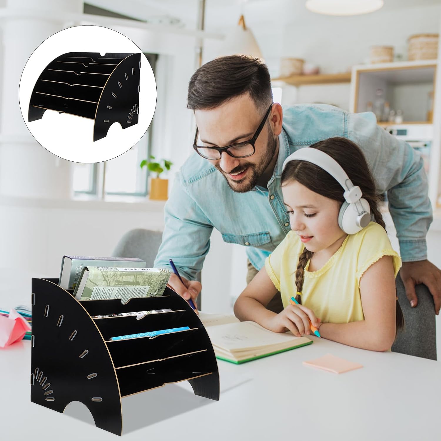 Package Include 1 x file organizer Characteristics -Material:Wood -Product Info:Wooden file shelf -Size:35.50X27.00X27.00cm/13.95X10.61X10.61in -Color:Black - Made of stable wood materials, strong and enough, light in weight, and can be used for a long time. - Very suitable for teachers, students, office workers and anyone who needs to store files office storage rack. - The storage holder is a lightweight design, easy to use, you can put it wherever you want document file racks. - The storage box is suitable for large-capacity file storage, and practical stackable paper organizer. - The storage holder is suitable for office, study and dormitory use, and the price is reasonable Multi-tiered Storage Rack.Goods DescriptionDesktop File Display Rack This Desk Organizer is made of stable materials, stable, and .desktop paper holder You can organize specific types of books, records or school assignments, and store your paper files perfectly, saying goodbye to your home or office.office storage rack Large capacity storage, clean and orderly.paper display stand Compartmentalized storage, easy to take