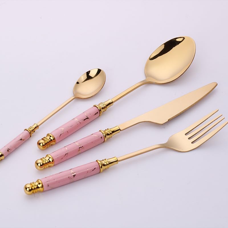 Product Category: Knife and ForkItem No.: 4-piece cutlery set with marble and ceramic handlesMaterial: Stainless steelPolishing process: cloth wheel polishing (mirror polishing)Applicable to: AdultsStainless steel material: 410 stainless steelColor: Dark green 4-piece setColor: White 4-piece setColor: Black 4-piece setColor: Pink 4-piece setProduct quality grade: first-class.About our BrandOur brand is GOODJAYVEN. We have always been committed to Household items. Do our best to bring more creative products to our customers.